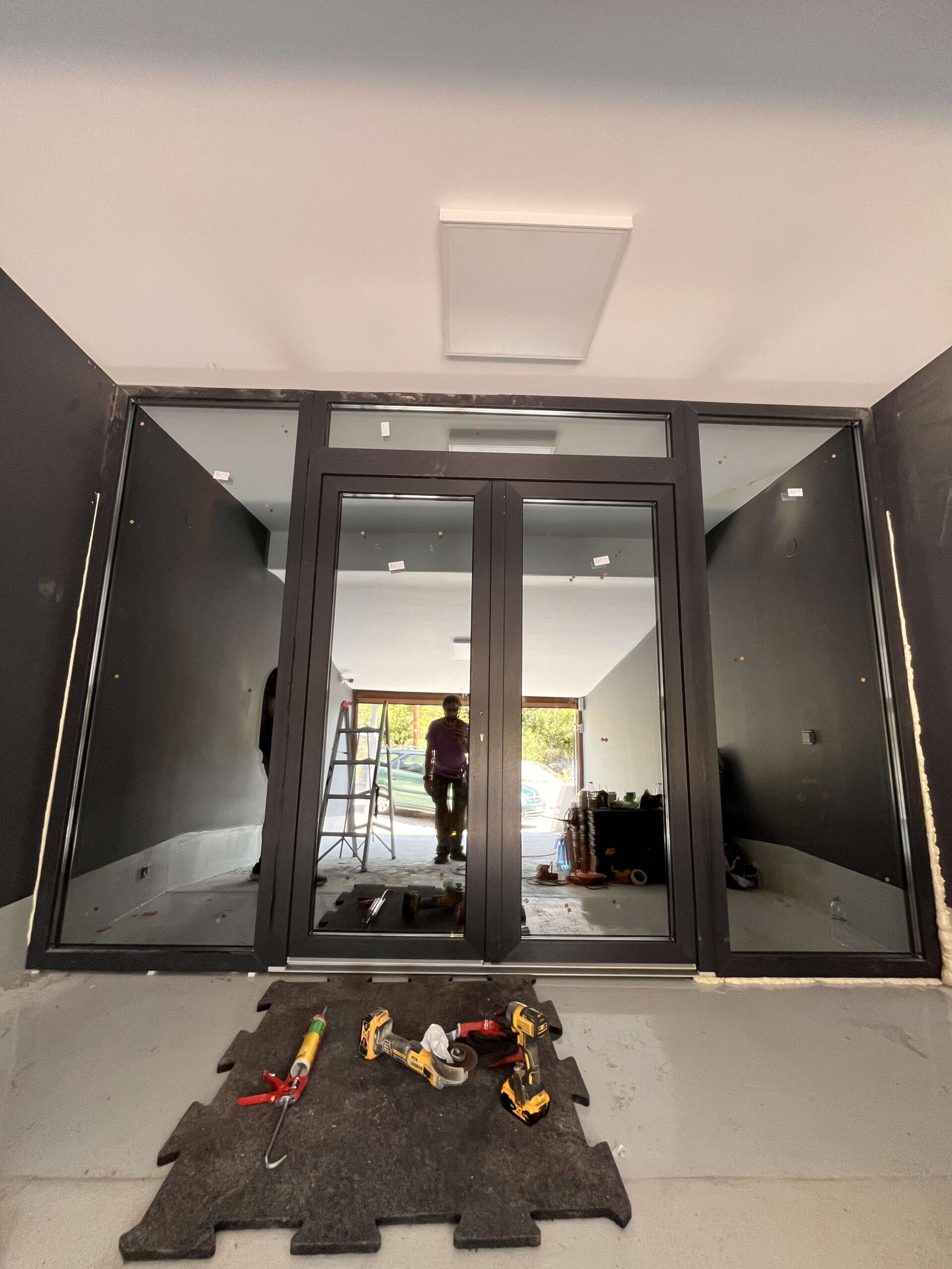 Η κατασκευή μας από PVC αποτελείται από 4 διαφορετικά τμήματα, εκ των οποίων τα 3 περιφεριακά είναι σταθερά ενώ στο κέντρο έχουμε την είσοδο με τα κινητά μέρη και διαθέτουν τζάμι triplex με επικάλυψη topsol, προσφέροντας αυξημένη ασφάλεια και πλήρη αδιαφάνεια προς το εσωτερικό του χώρου. Η χρήση αυτών των υλικών εξασφαλίζει ότι η κατασκευή παραμένει απρόσβλητη από εξωτερικές απειλές, ενώ ταυτόχρονα προσφέρει ένα εντυπωσιακό καθρέφτισμα που ενισχύει την αισθητική του χώρου.