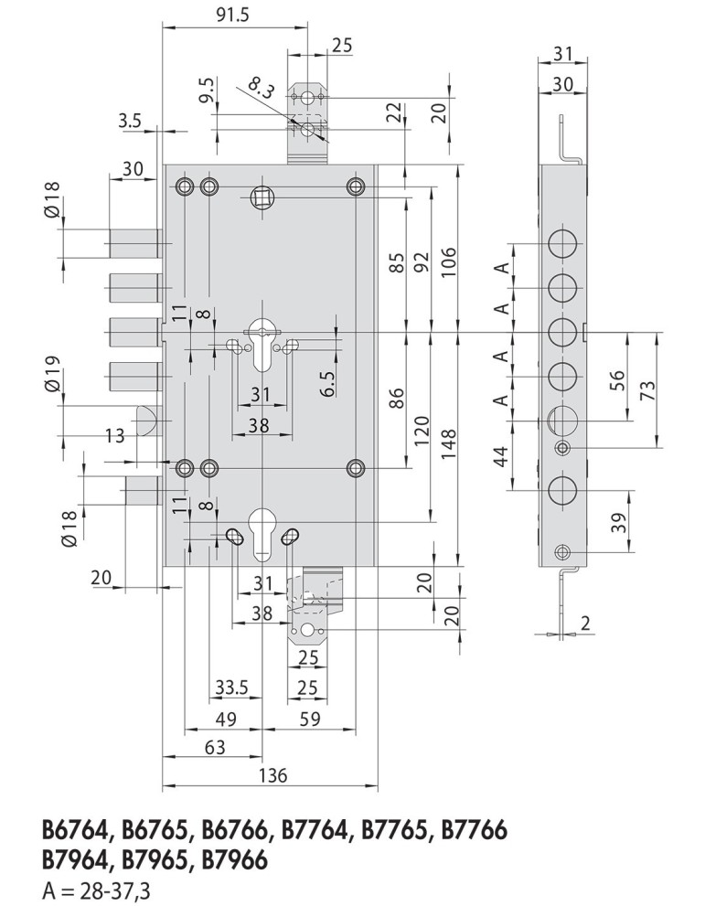 Ιδανική για αντικατάσταση διπλής κλειδαριάς με κέντρο 65mm με διπλό καταπέλτη και με την γλώσσα στο κάτω μέρος.