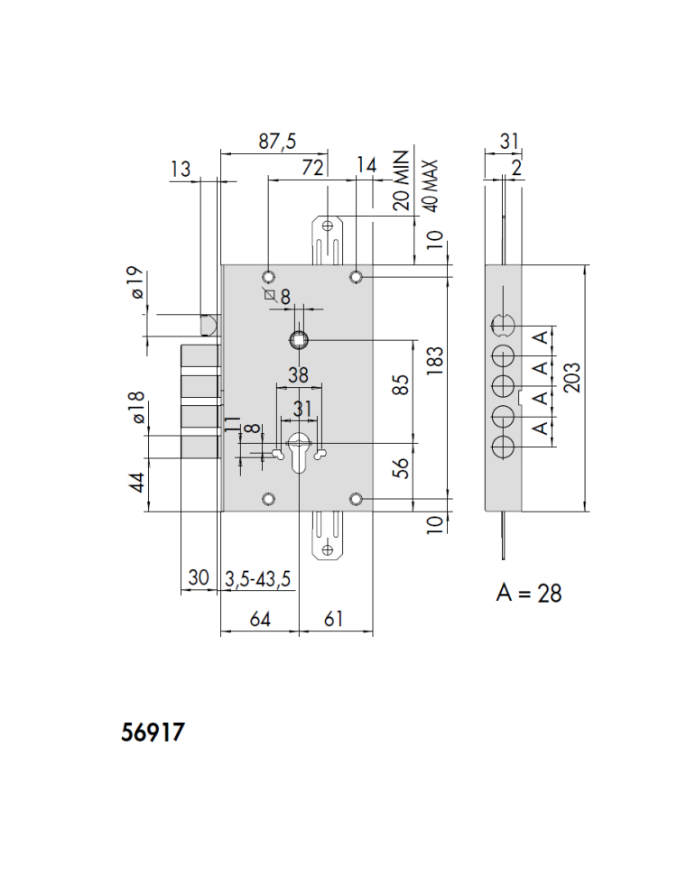 Γραναζωτή κλειδαριά για θωρακισμένη πόρτα από την Ιταλική εταιρεία Cisa – Μοντέλο Revolution PRO Exit lock.