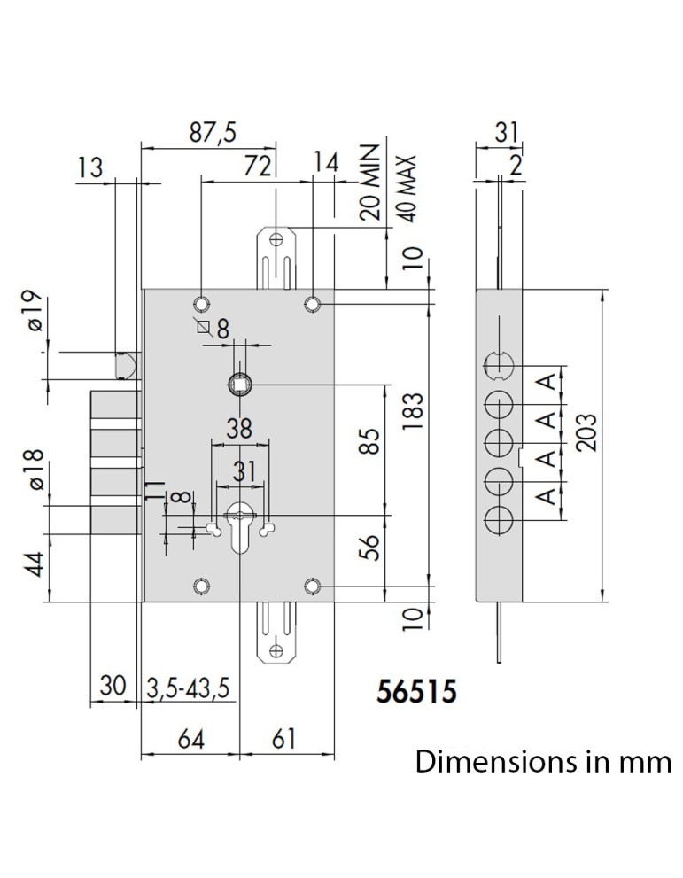 Ιδανική για αντικατάσταση κλειδαριάς με κέντρο 65mm με διπλό καταπέλτη και με την γλώσσα στο πάνω μέρος.