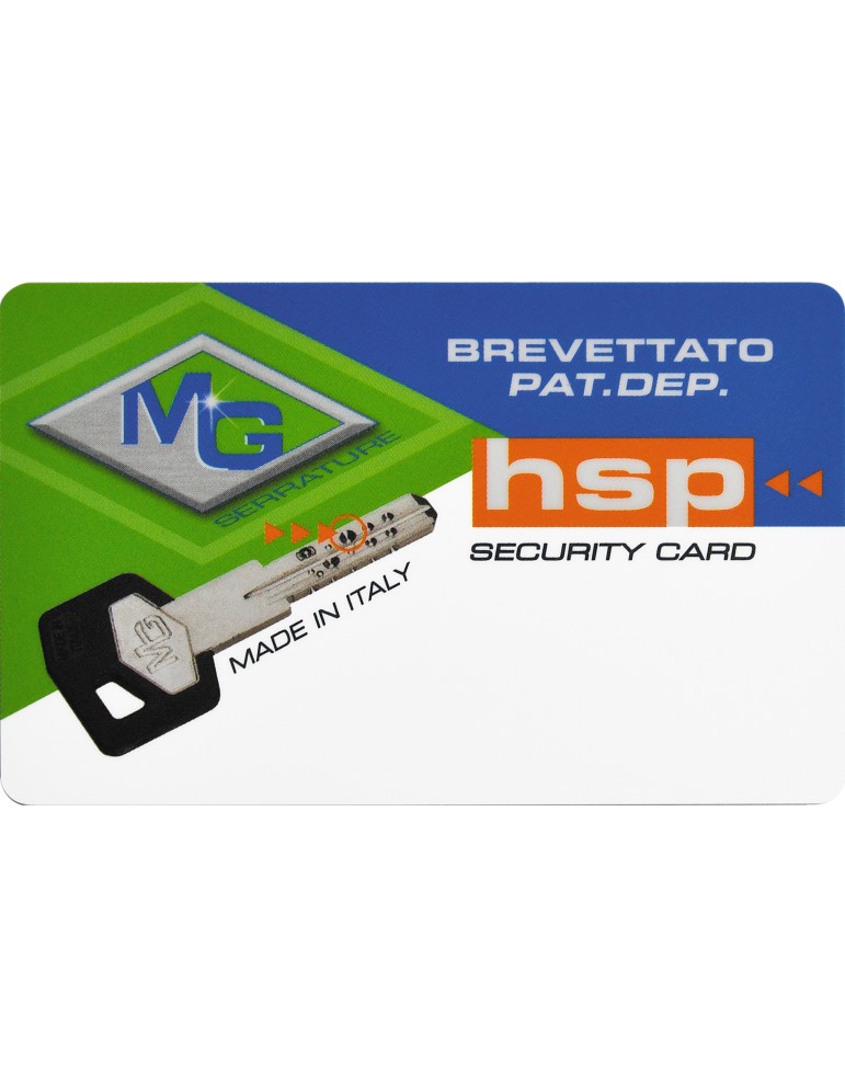 Το πατενταρισμένο κλειδί βγαίνει αποκλειστικά στο εργοστάσιο της MG SERRATURE (μέσω ενός εξουσιοδοτημένου MG POINT) μόνο με την επίδειξη της κάρτας ασφαλείας που περιλαμβάνεται μέσα στην συσκευασία.