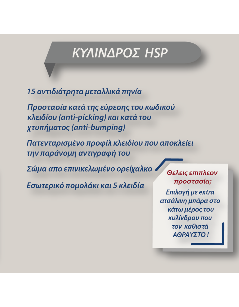 Κατηγορίες: Κύλινδροι, Ασφαλείας με πατενταρισμένο κλειδί